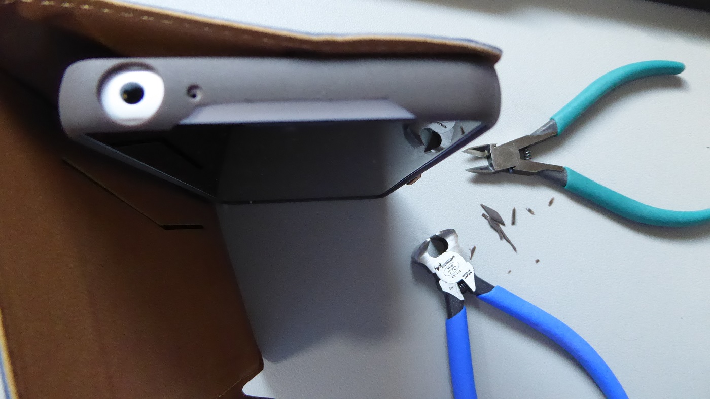 なので右側の受け側を離れないように両面テープで本体側にくっつけました。