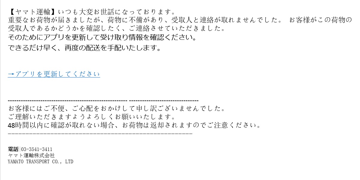 重要なお荷物が届きましたが、荷物に不備があり、受取人と連絡が取れませんでした。 お客様がこの荷物の受取人であるかどうかを確認したく、ご連絡させていただきました。