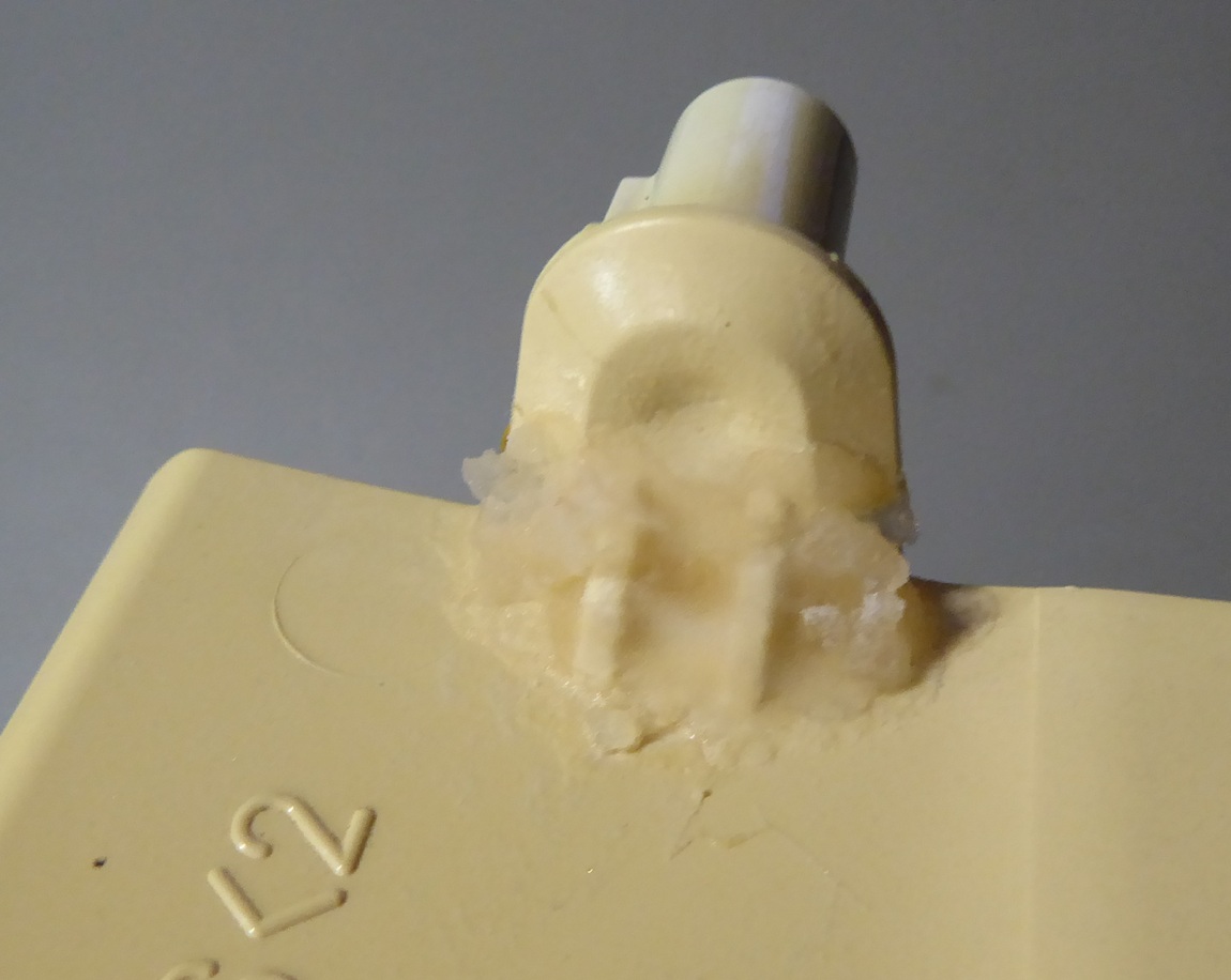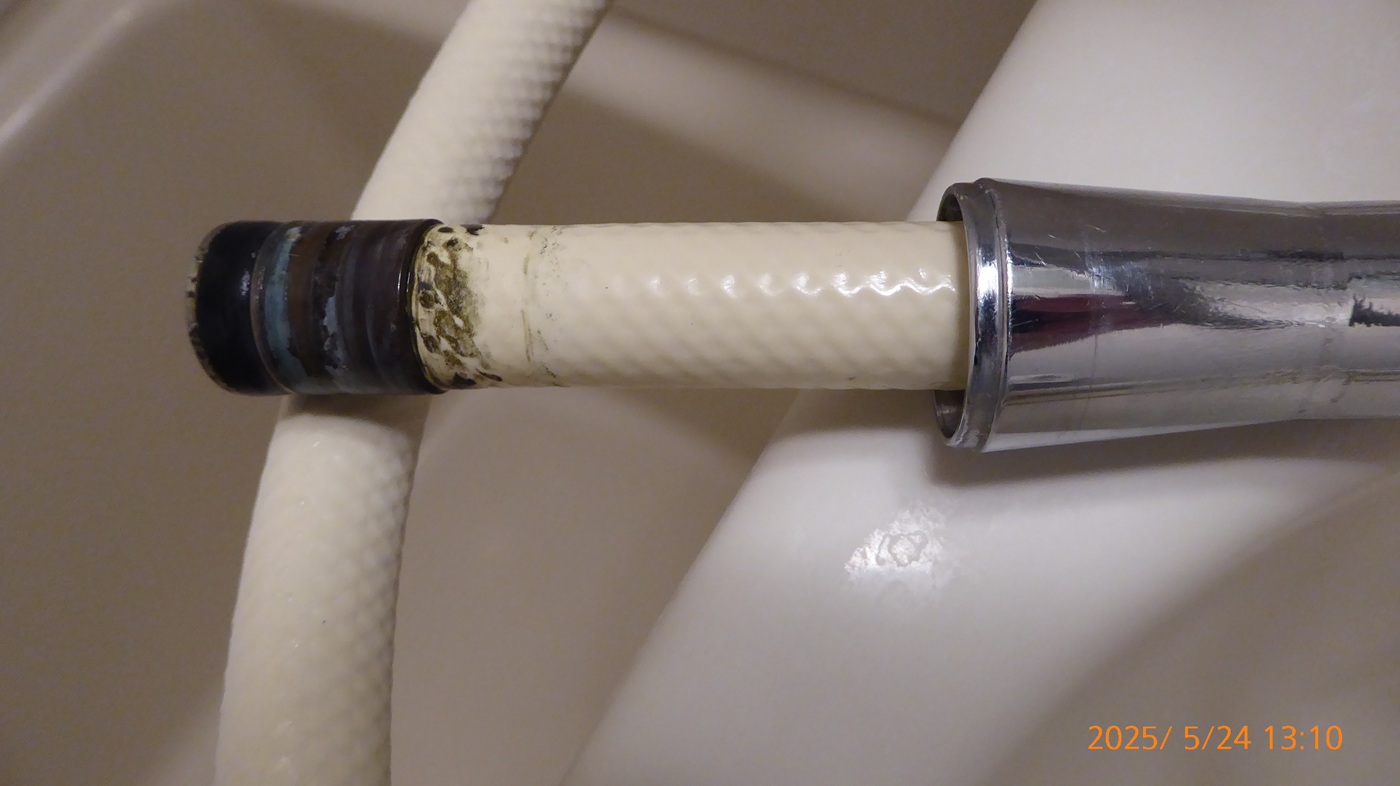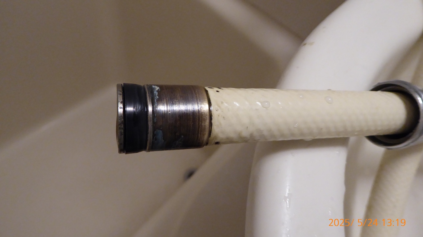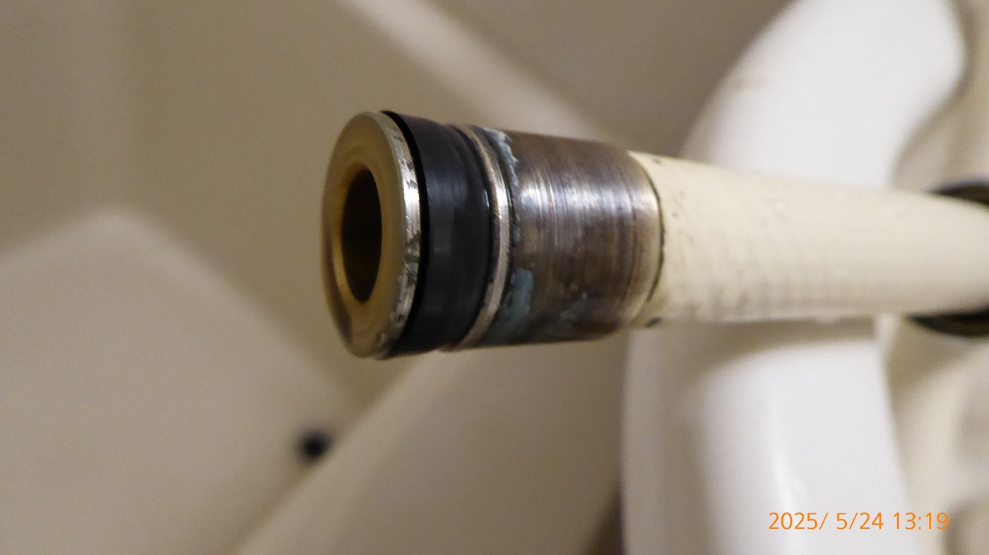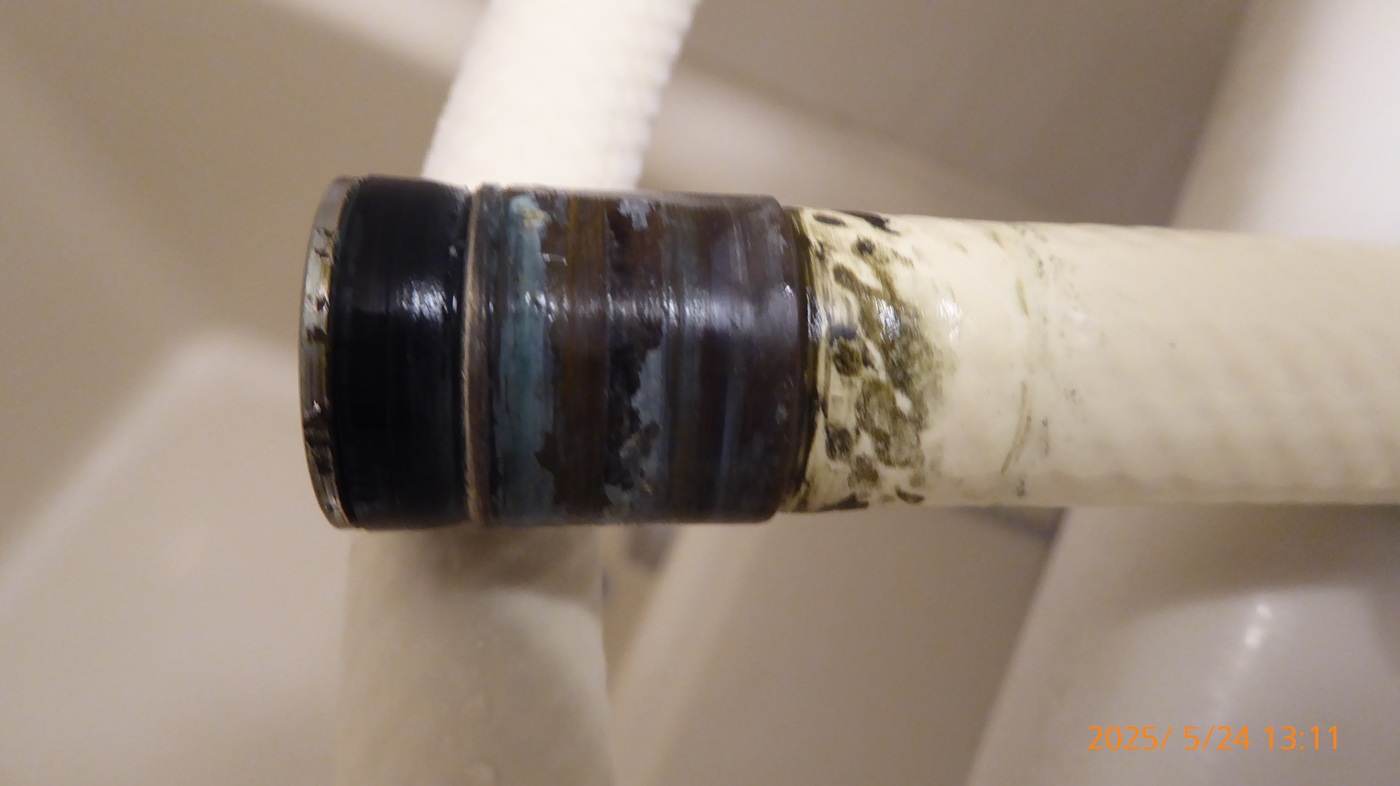 しかもよく見るとコードの被覆が剥がれて錆びた撚り線が見えていた。アダプタの根本からプラグの根本までベタベタになってところどころむき出しになっていた。