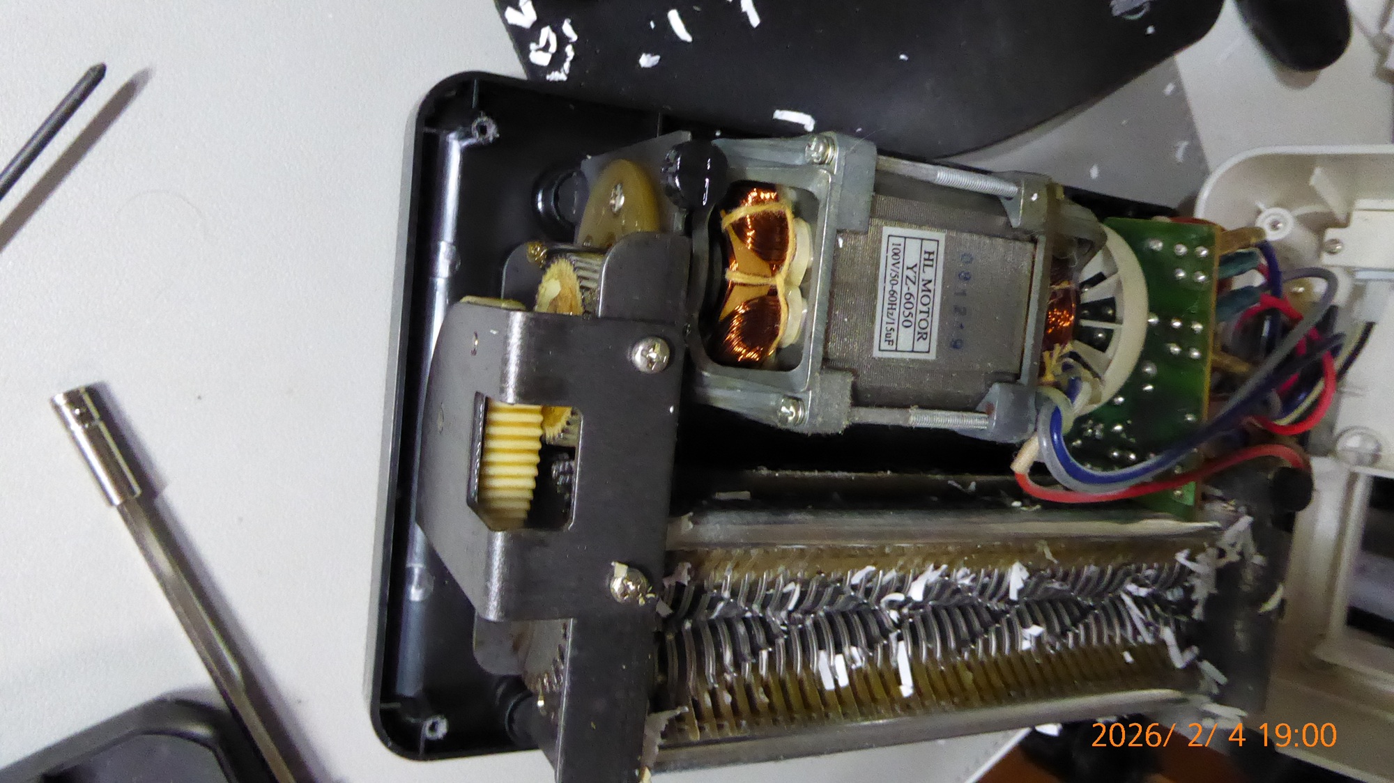 特に何かいじったわけではないけど分解したとき電波を受信するフェライトコアがポロっと落ちたので元に戻したぐらいだが、少し回転したかもしれない、何か青い小さな丸いコンデンサみたいなのがコアにくっつけてあって見えない状態だったが組み立てるときにそれが見える状態になっていたのは覚えているがそれぐらいだ。