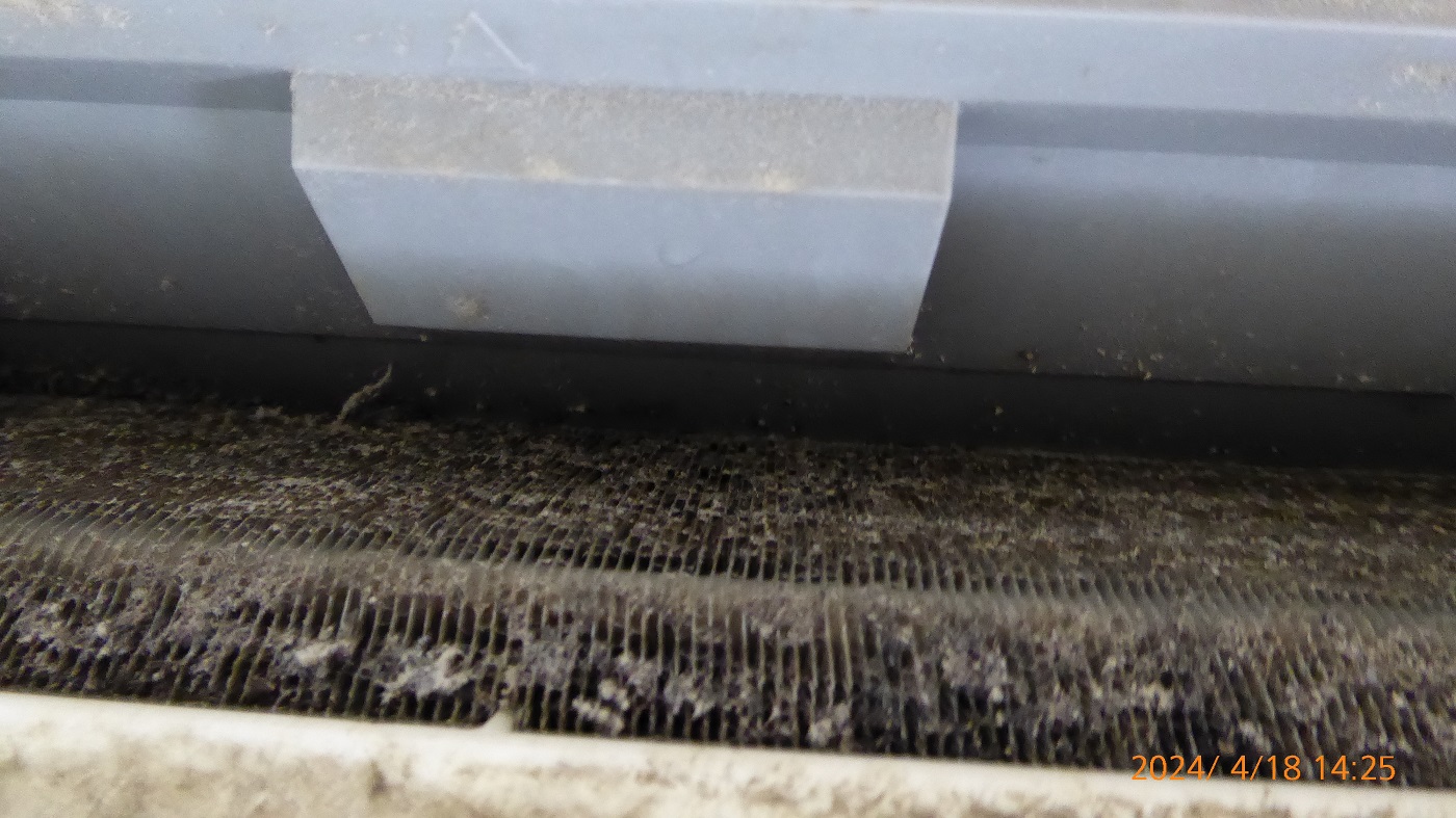 エアコンのシロッコファンに大量のほこりが付いていた。