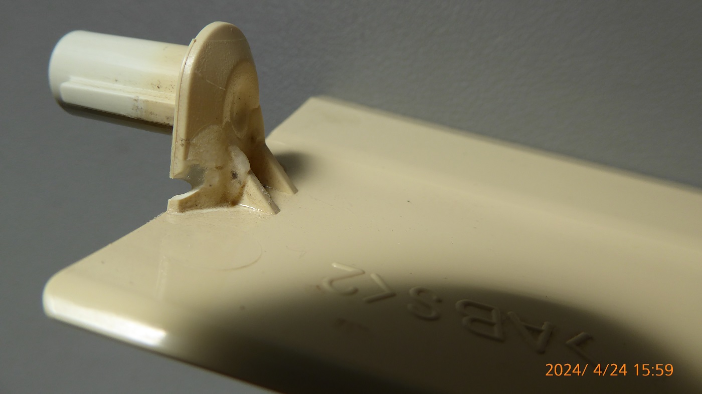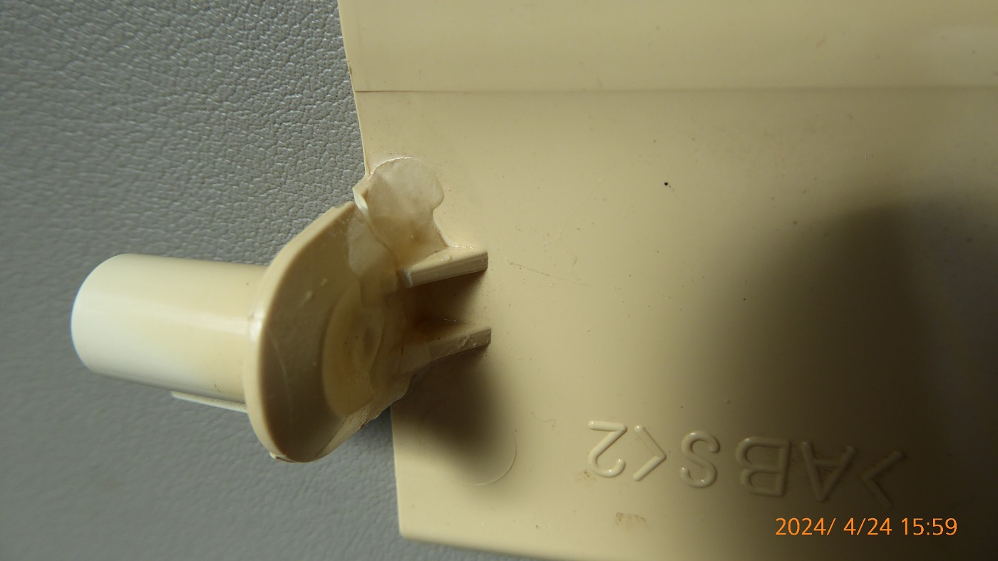 ところで何回かルーバーを外したり付けたりしていたら丸い爪を折ってしまった。
