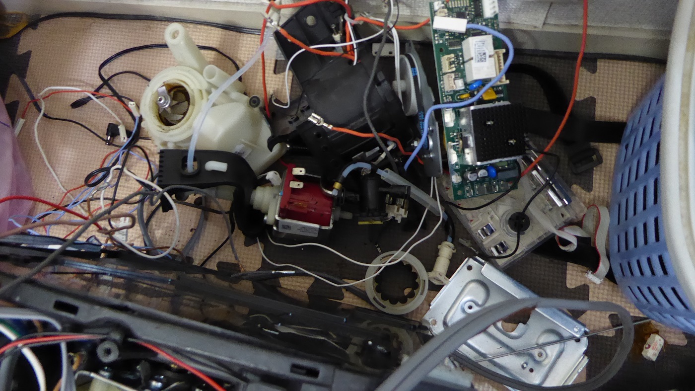 パネルをもとに戻し正常に動作するかポンプを動かしてみたりしたが、動作音がすごい静かになった。たぶん最初うるさかったのはパネルが薄いプラスチックなので、ポンプの振動で(ポンプの作動音はかなり静か)パネルが振動して音が出ていたようだ。組み立て直したときに振動しなくなったようだ。(単に水が通ったので音が静かになったのかも)