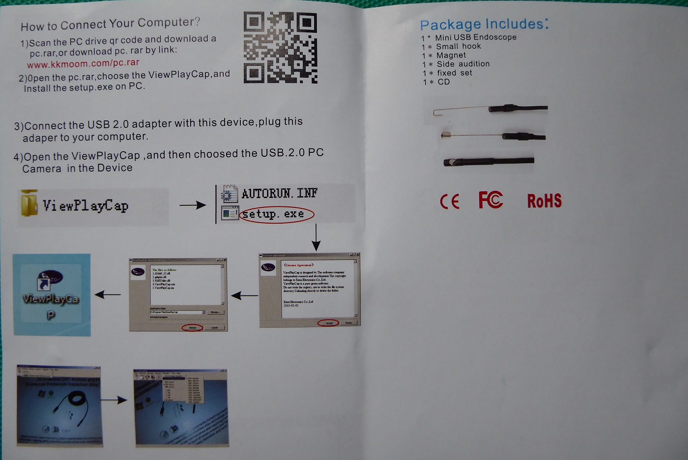パソコンに繋いだら自動で認識して、窓の杜からインストールしたwebカメラ用のフリーソフトで見れました。
