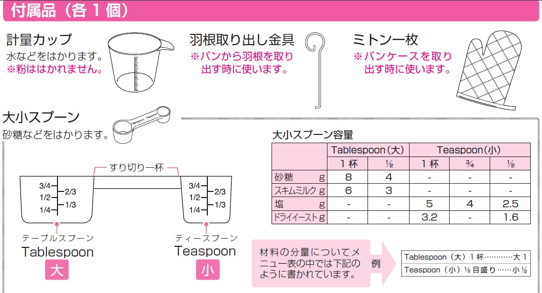 それから羽根は食パンを焼くとパンの中に入ったままになりやすいようです。付属品の羽取り出し金具は必需品です。